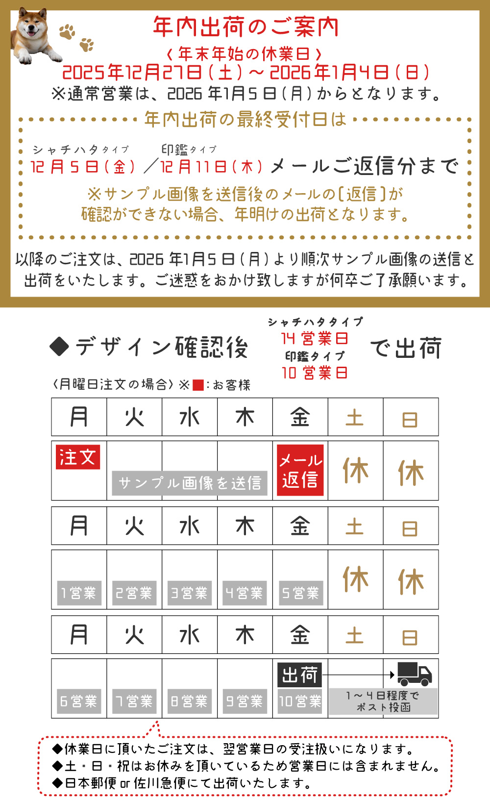 犬のイラストや犬文字は当店のプロデザイナーが作成しているオリジナルデザインです。犬文字は、捺したときに文字潰れが起こらないようお名前に合わせて犬の位置や大きさを綿密に調整し作成しています。どちらも認印としてだけでなく、銀行で銀行印として利用できる実用的なハンコです。